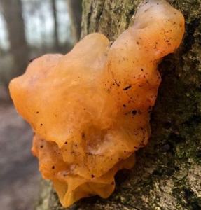 Also known as Golden Jelly, Witches Butter or Yellow Trembler is a jelly fungus (helpfully named because they look like jelly, not because they taste like jelly!). It appears from underneath the bark of its host tree during wet weather, during dry spells it shrivels into a hard to spot thin rubbery patch. Although it looks as though this fungus is feeding on the wood, it is actually a parasitic fungus feeding on another unrelated fungus, which is feeding on the dead wood. According to legend, if yellow brain fungus appeared on the gate or door of a house it meant that a witch had cast a spell on the family living there, the only way the spell could be removed was by piercing the fungus several times with straight pins until it went away, this is how yellow brain also gained the other common name of 'witches’ butter’.